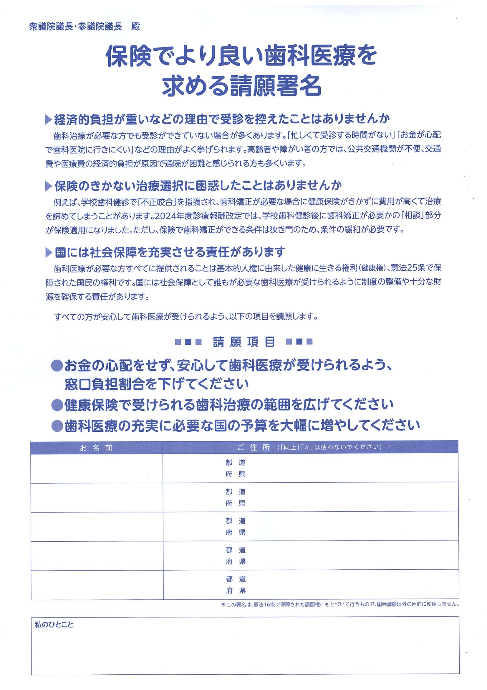 ●新「保険でより良い歯科医療を求める」請願署名