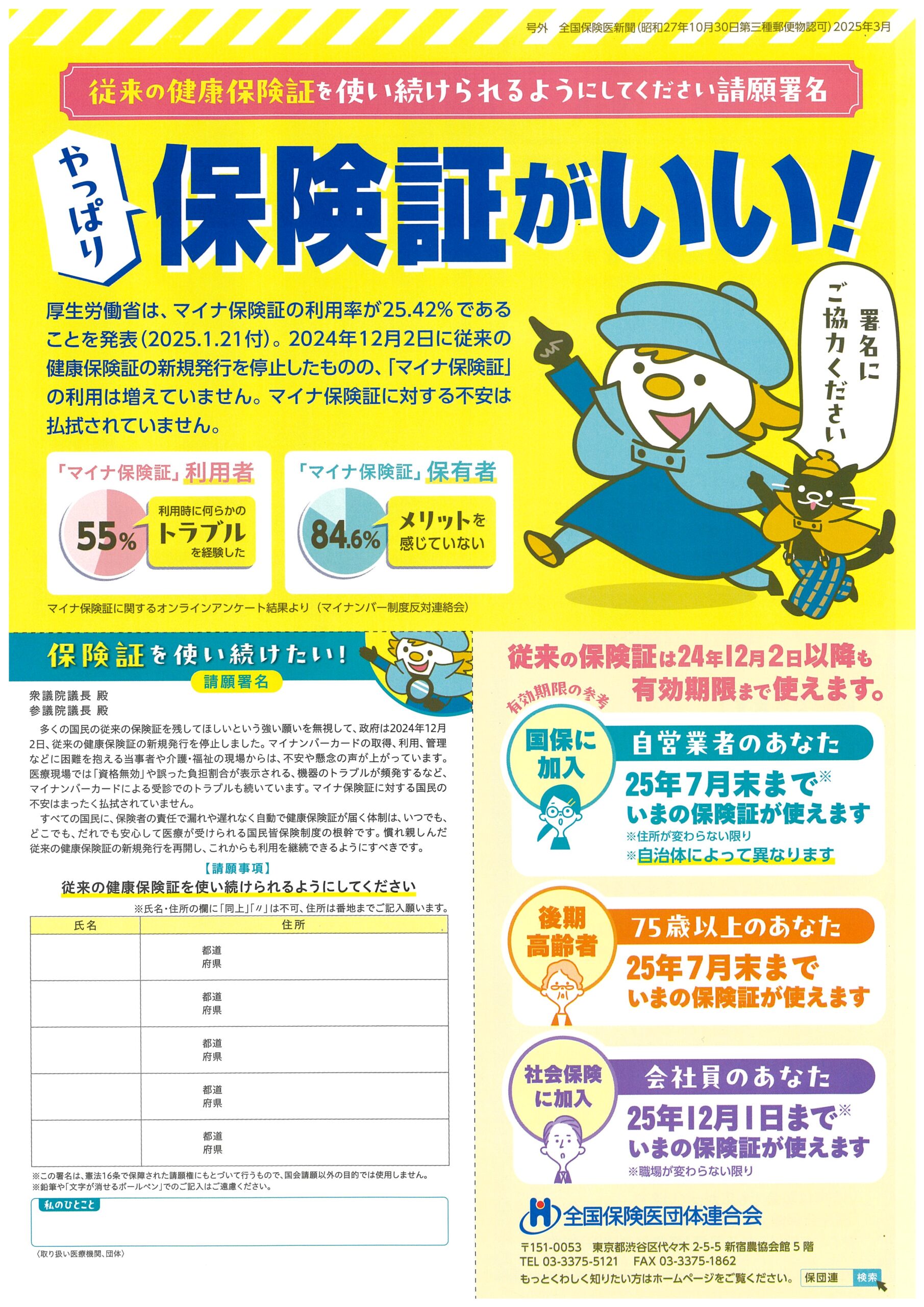 ●「現行の健康保険証を残してください」 請願署名