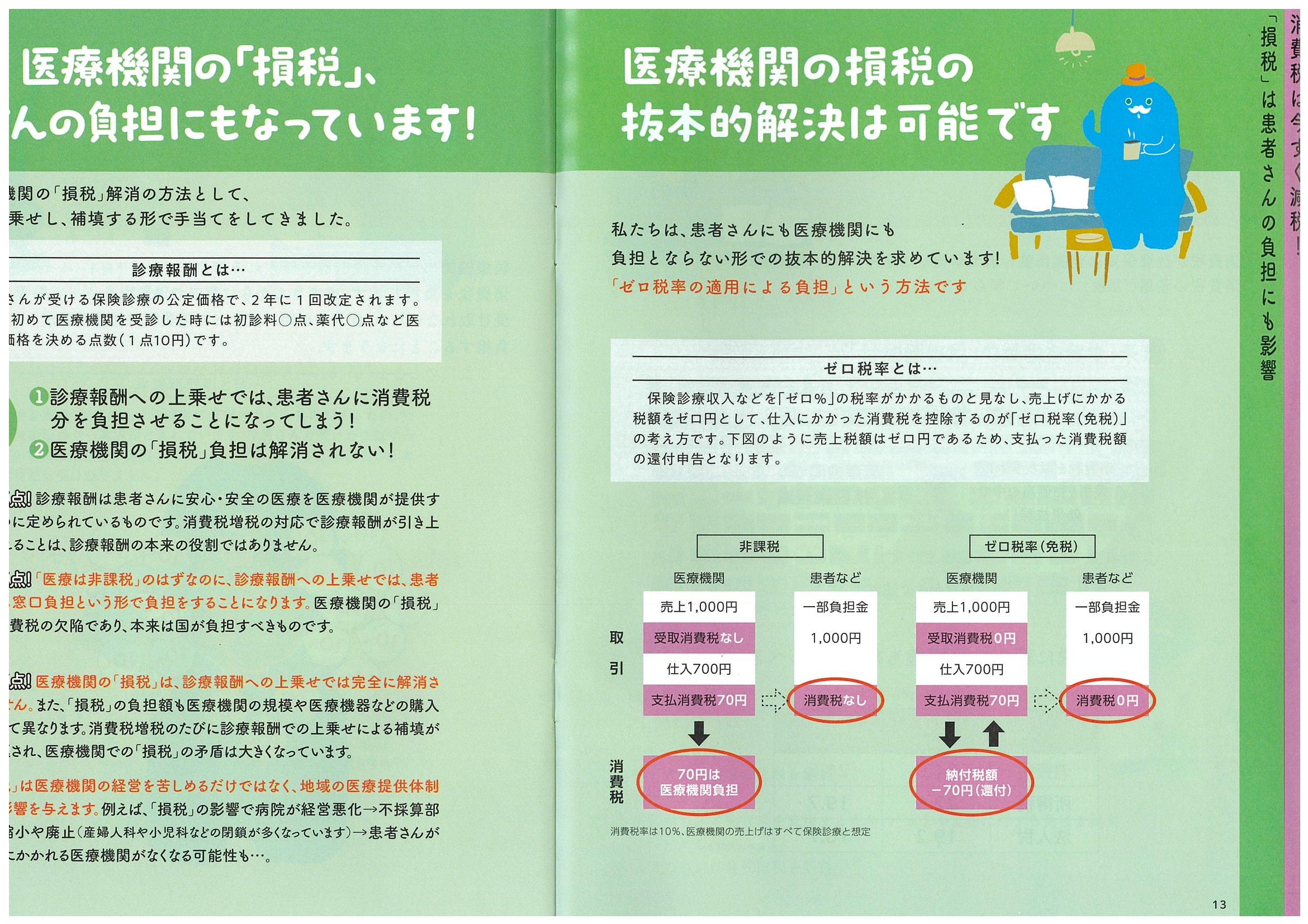 保険診療には消費税がかからないとされているのに、医療機関と患者さんに消費税分の負担が生じているってご存じですか?このパンフでは、消費税の矛盾と医療費と消費税の関係を知っていただこうと作成しました。